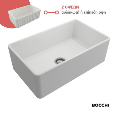 Νεροχύτης Κουζίνας Πορσελάνης Επικαθήμενος 76×46 Bocchi White Matt