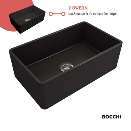 Νεροχύτης Κουζίνας Πορσελάνης Επικαθήμενος 76×46 Bocchi Black Matt