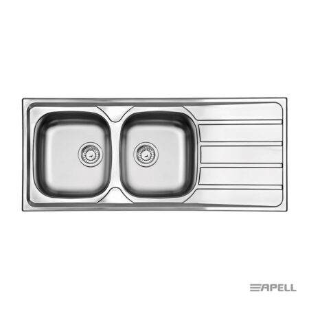 Νεροχύτης AREA ανοξείδωτος με 2 γούρνες και πάγκο εργασίας, διάσταση 116×50 εκ., αντιστρεφόμενος, για ερμάριο 80εκ., APELL Ιταλίας