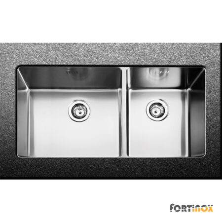 Νεροχύτης ανοξείδωτος 85×44 εκ. υποκαθήμενος με 2 γούρνες, ερμάριο 90 εκ., της σειράς Squadro, Fortinox