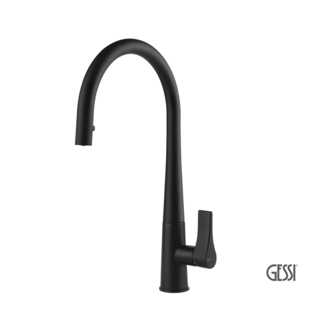 Μπαταρία νεροχύτου θερμομικτική PROTON με υψηλό περιστρεφόμενο ρουξούνι και συρόμενο ντους, GESSI Ιταλίας