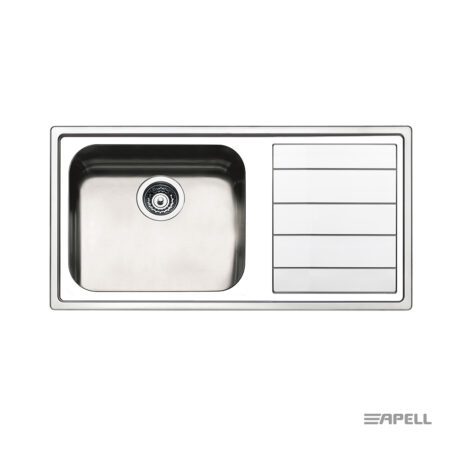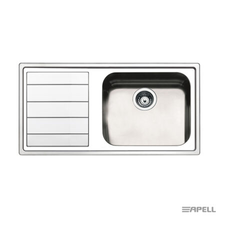 Νεροχύτης LINEAR ανοξείδωτος με 1 μεγαλη γούρνα και πάγκο εργασίας στα δεξιά, διάσταση 100×50 εκ., για ερμάριο 80εκ., APELL Ιταλίας