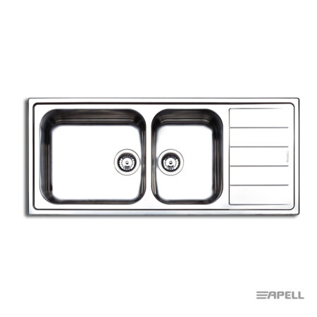 Νεροχύτης LINEAR ανοξείδωτος 116×50 εκ. με 1 μεγαλη,1 μικρή γούρνα & πάγκο εργασίας, για ερμάριο 90 εκ., APELL Ιταλίας