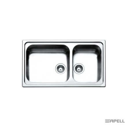 Νεροχύτης ανοξείδωτος Anniversario λείος με 2 όμοιες γούρνες, διάσταση 79×50 για ερμάριο 80 εκ., APELL Ιταλίας