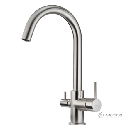 Μπαταρία νεροχύτη filter-tap Eurorama Ιταλίας, με περιστρεφόμενο ρουξούνι & εκτροπέα. Για σύνδεση με ντεπόζιτο. 2 εξόδων, 3 παροχών (1:έξοδος ζεστού/κρύου