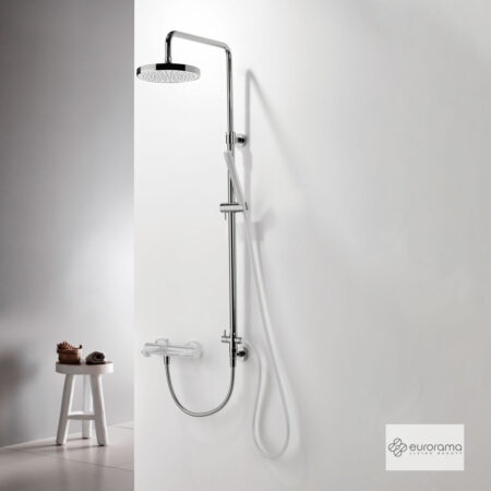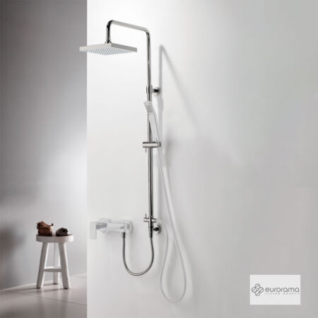 Κολώνα για σύνδεση με μπαταρία λουτρού. Ρυθμιζόμενο ύψος 83-144 εκ. με ανακλινόμενη κεφαλή anticalcare 20×20 εκ., εκτροπέα, στήριγμα τηλεφώνου &