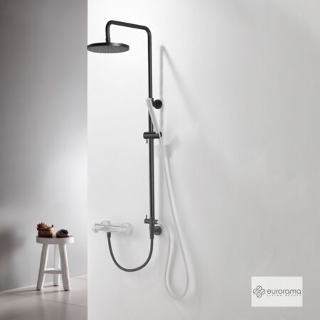 Ρυθμιζόμενη Κολώνα Ντους με κεφαλή Φ20 για σύνδεση μεΜπαταρία Λουτρού, Black Matt