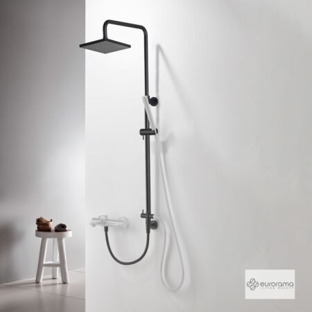 Ρυθμιζόμενη Κολώνα Ντους με κεφαλή 20×20 για σύνδεση μεΜπαταρία Λουτρού, Black Matt