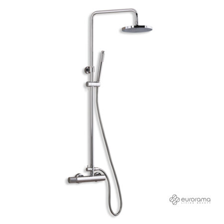 Στήλη ντους IDEA με τηλέφωνο ντους ”anticalcare”, σπιράλ 1,50μ., ανακλινόμενη κεφαλή ντους ”anticalcare”, θερμομικτική μπαταρία με εκτροπέα 2 εξόδων, DROP
