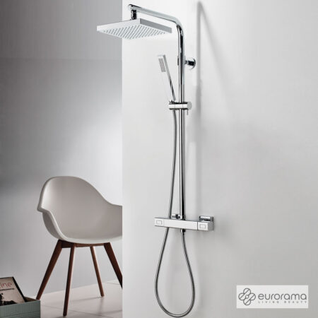 Θερμοστατική Μπαταρία Ντουζιέρας με Κεφαλή και Κολώνα μη ρυθμιζόμενου ύψους Thermo Square Eurorama Chrome
