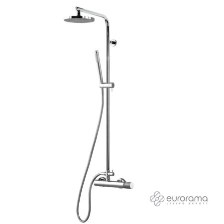 Μπαταρία ντουζιέρας θερμομικτική OSO 2 εξόδων με κολώνα Φ25 mm σταθερού ύψους 117 cm, ανακλινόμενη κεφαλή Φ20 cm & τηλέφωνο