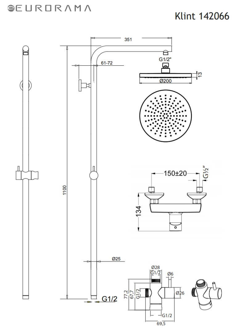 Μπαταρία Ντουζ + Σταθερή Κολώνα και Κεφαλή KLINT Χρωμέ