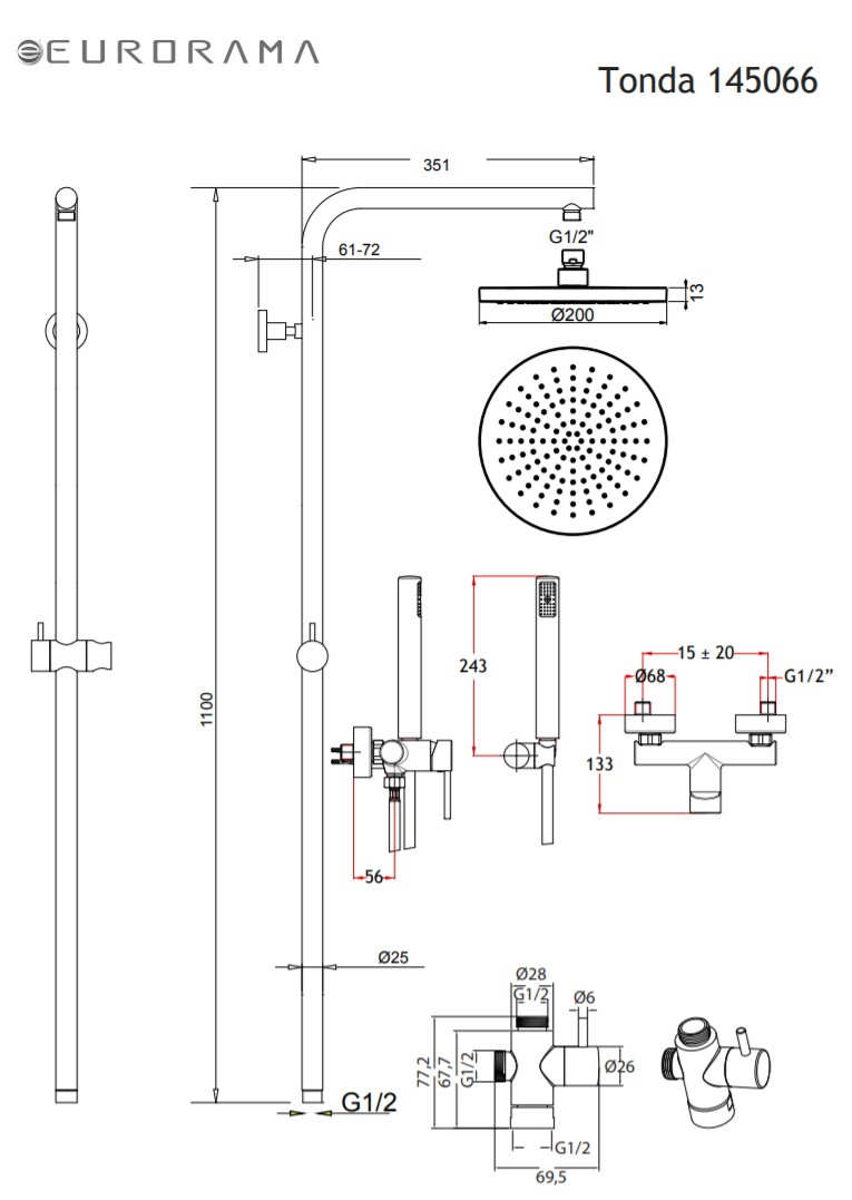 Μπαταρία Ντουζ + Σταθερή Κολώνα και Κεφαλή TONDA Χρωμέ