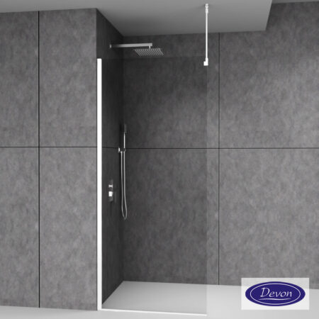 DEVON WALK-IN διαχωριστικό ντους, διάσταση 46-48 εκ. – ύψος 200 εκ. με βραχίονα στήριξης. Κρύσταλλο ασφαλείας Clear (διαφανές) 8 χιλ.