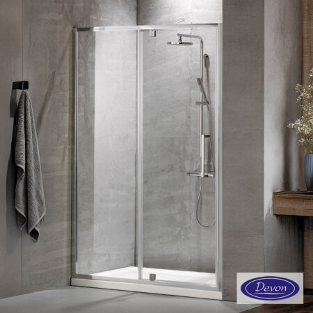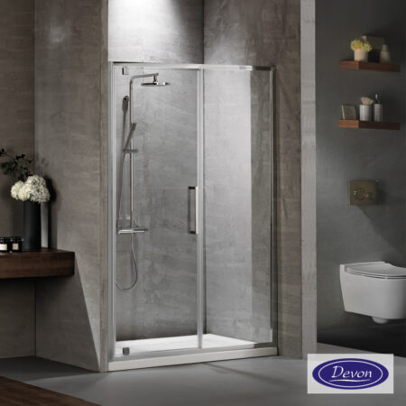 Πόρτα ντουζιέρας DEVON FLOW 100 με 1 σταθερό & 1 συρόμενο φύλλο. Διαστάσεις: 97-101 / ύψος 195 εκ. Άνοιγμα εισόδου