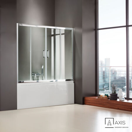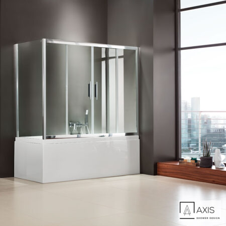 Πόρτα μπανιέρας AXIS 170 με 2 σταθερά & 2 συρόμενα φύλλα. Διαστάσεις: 167-171 / ύψος 140 εκ. Άνοιγμα εισόδου 69εκ.