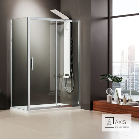 Πόρτα ντουζιέρας AXIS 100 με 1 σταθερό & 1 συρόμενο φύλλο. Διαστάσεις: 97-101 / ύψος 185 εκ. Άνοιγμα εισόδου 40εκ.