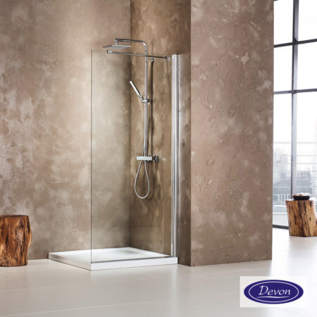 Σταθερό πλαινό ντουζιέρας DEVON FLOW 90. Διαστάσεις: 87-89 / ύψος 195 εκ. Κρύσταλλο ασφαλείας Clear (διαφανές) 6 χιλ. με επεξεργασία