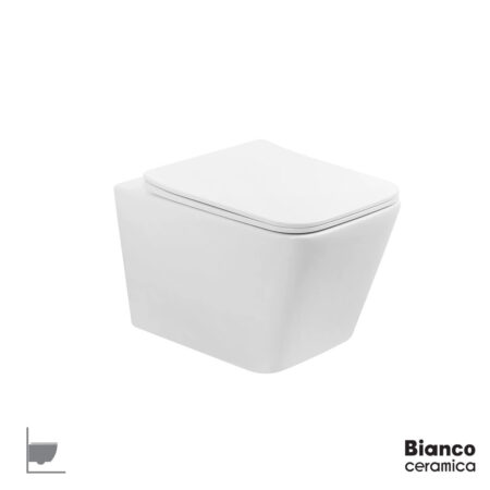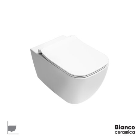 Λεκάνη κρεμαστή LENTA Rimless με προβολή 53cm, με κάλυμμα βακελίτη Soft-close, με σύστημα γρήγορης απασφάλισης, BIANCO CERAMICA