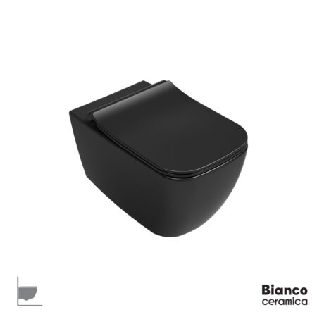 Λεκάνη Κρεμαστή MIZO/51,5 Rimless με κάλυμμα Slim Soft Close MS36SC, Bianco Ceramica Black Matt