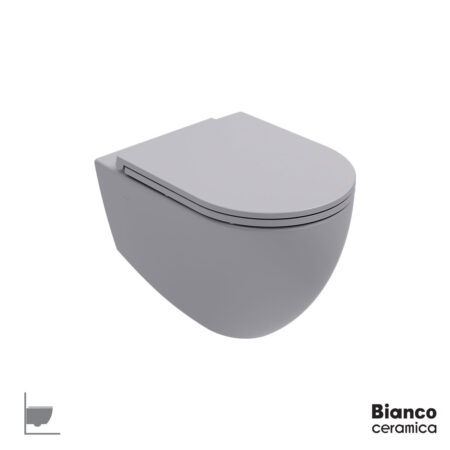 Λεκάνη Κρεμαστή LENTA/53 Rimless με κάλυμμα Soft Close MS38C, Bianco Ceramica Stone Grey