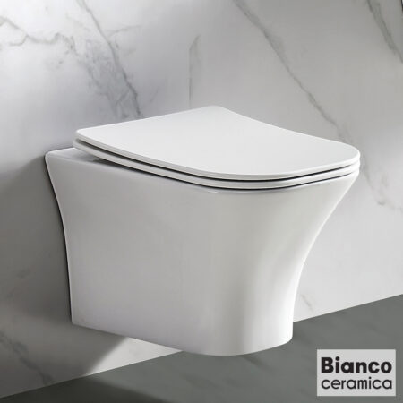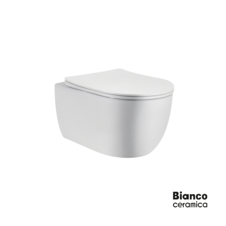Λεκάνη Κρεμαστή DELIA/49 Rimless με κάλυμμα Slim Soft Close 9500SC, Bianco Ceramica White