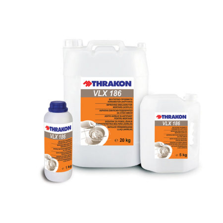 Το προϊόν VLX 186 είναι ένα ακρυλικό βελτιωτικό κονιαμάτων, χωρίς οργανικούς διαλύτες και είναι φιλικό προς το περιβάλλον. Συνίσταται για βελτίωση των ιδιοτήτων της κόλλας και του αρμόστοκου. Αυξάνει την συγκολλητική ικανότητα, μειώνει σημαντικά την απορροφητικότητα σε νερό. Χρησιμοποιείται και ως αστάρι αδιάλυτο για την τοποθέτηση πλακιδίων σε απαιτητικά υποστρώματα (παλιά πλακίδια, μάρμαρα, μωσαϊκό κ.λπ.) Κατανάλωση: ρητίνη VLX 186 40-80g/ανά κιλό προϊόντος, αστάρι 1kg/15m² επιφάνειας (μη απορροφητικές επιφάνειες)